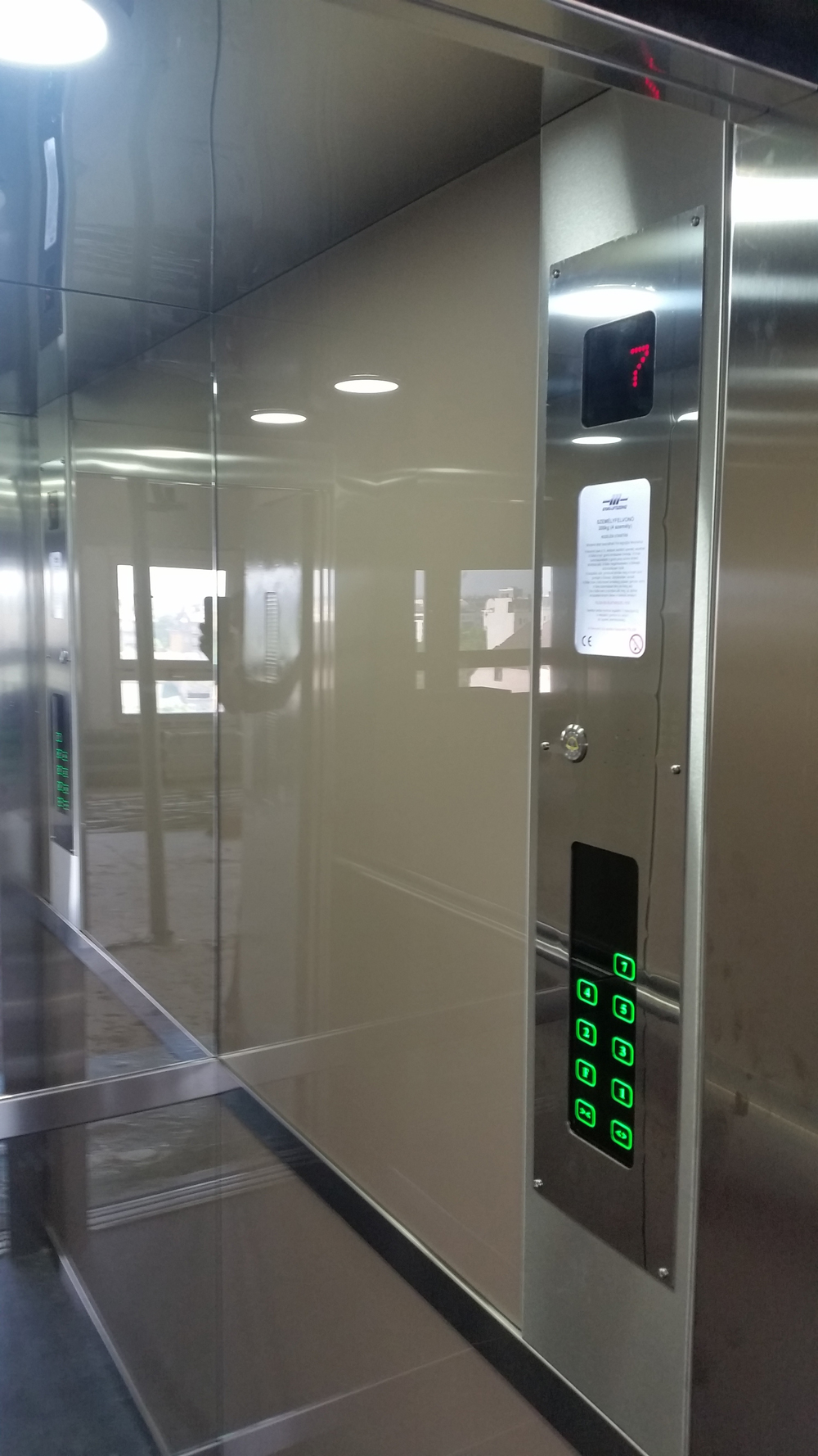 Beépítésre került egy új energia takarékos vezérlés a gépházba szabályozott hajtással, az energia megtakarítás és a komfortosabb utazás miatt. Az új vezérlő panel magyar nyelven programozható mely rögzíti, tárolja és magyar nyelven kiírja a hibákat. Felvonó fülkék esztétikai burkolása rozsdamentes fülkeajtóval, sülyeszett leed világítással, teljes fal méretű tükörrel és festett üveg falakkal valósult meg.
