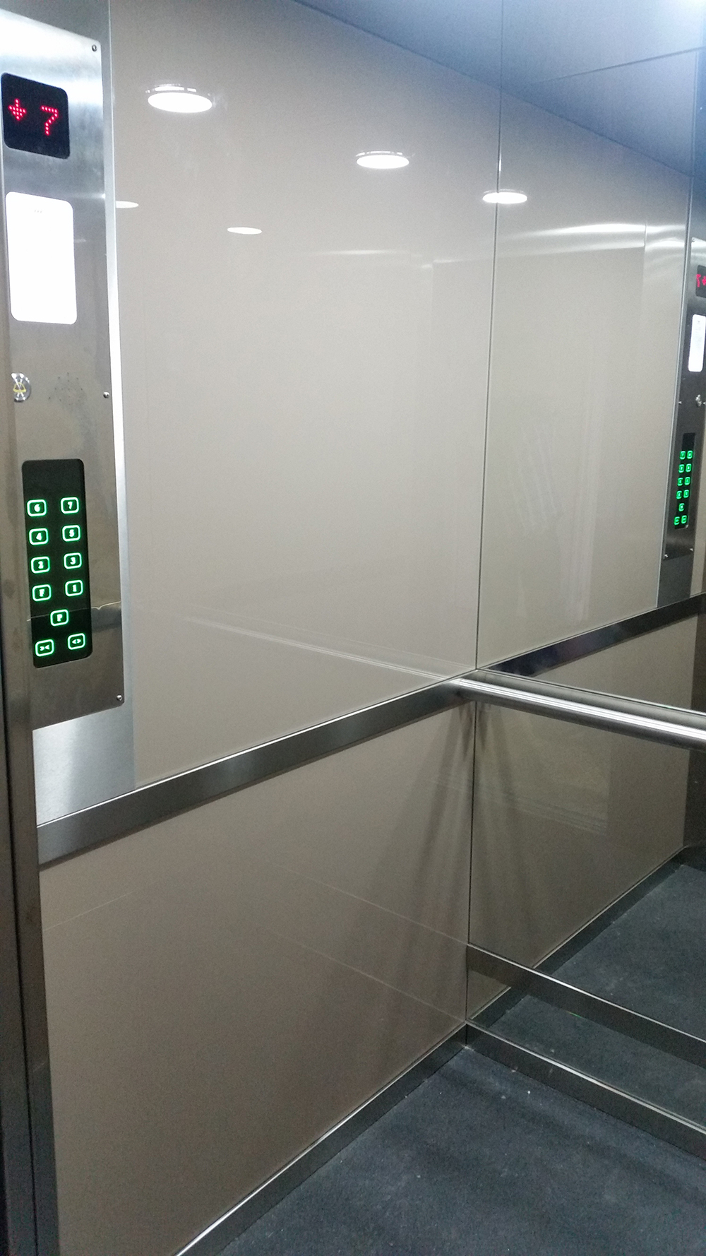Beépítésre került egy új energia takarékos vezérlés a gépházba szabályozott hajtással, az energia megtakarítás és a komfortosabb utazás miatt. Az új vezérlő panel magyar nyelven programozható mely rögzíti, tárolja és magyar nyelven kiírja a hibákat. Felvonó fülkék esztétikai burkolása rozsdamentes fülkeajtóval, sülyeszett leed világítással, teljes fal méretű tükörrel és festett üveg falakkal valósult meg.
