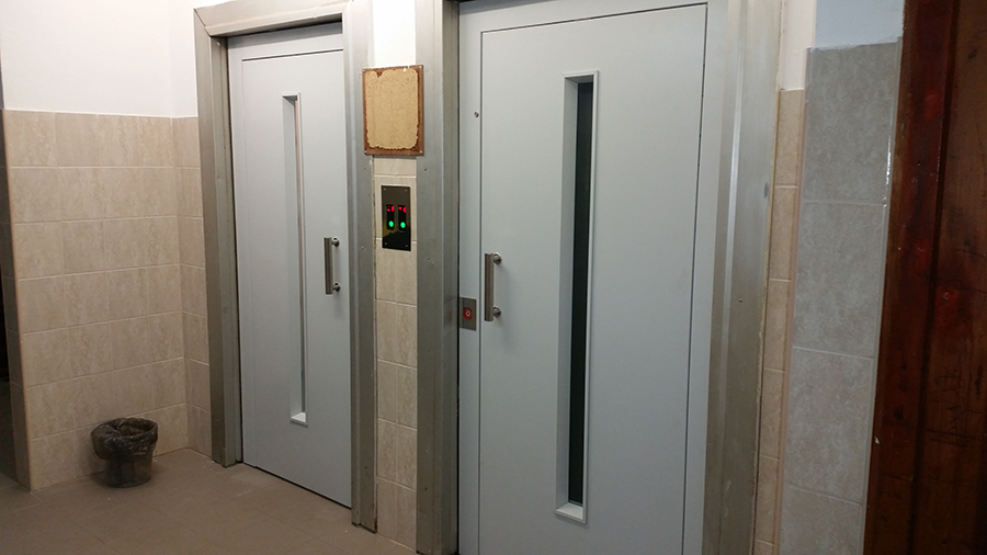 Duplex felvonó hajtásszabályozással. Felvonó vezérlés csere. Felvonófülke burkolás. Földszinti aknaajtók cseréje.